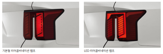 후면부 램프는 기본형에는 LED 적용되지 않고, 시그니처 트림부터 LED 리어 콤비네이션 램프가 적용됩니다.
