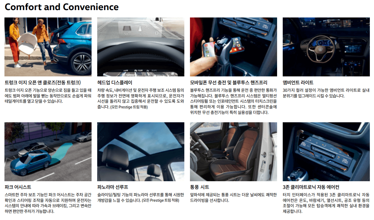 티구안 모델의 장점이 옵션이 다양하다는 것입니다. 주요 옵션은 아래와 같습니다.