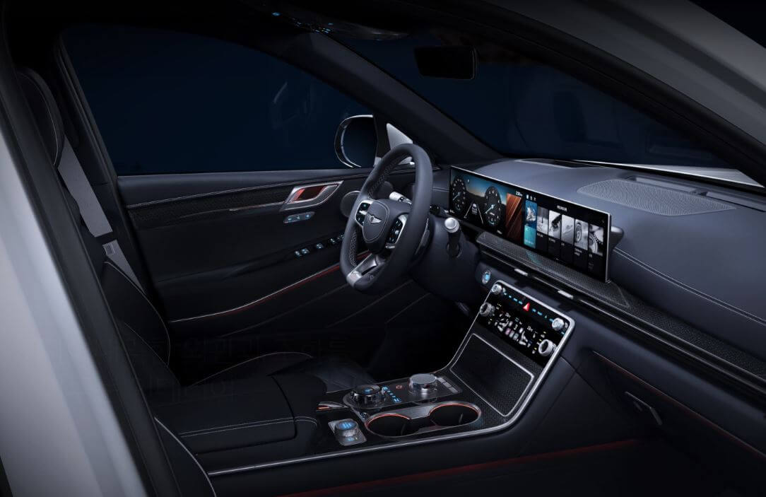 전면부 그릴은 이중(제네시스 시그니처 두줄) 메쉬 G-Matrix 그릴이 적용됩니다.