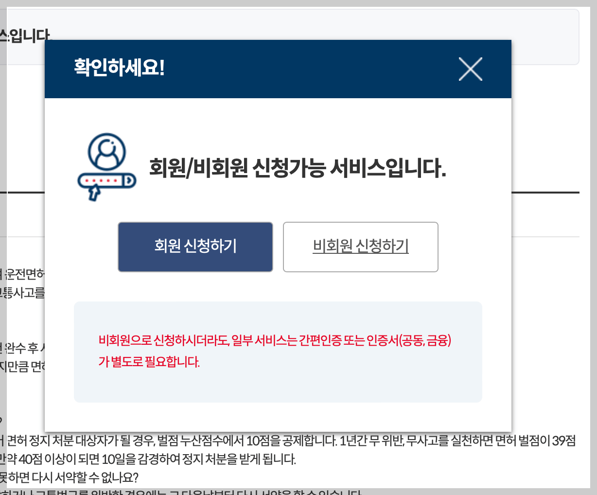 • 면허정지 및 취소 상태가 아닌 정상적인 상태에서 신청할 수 있습니다.