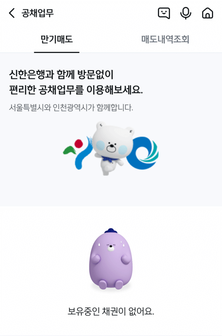 - 공과금 → 공공기관 채권 → 만기매도 신청