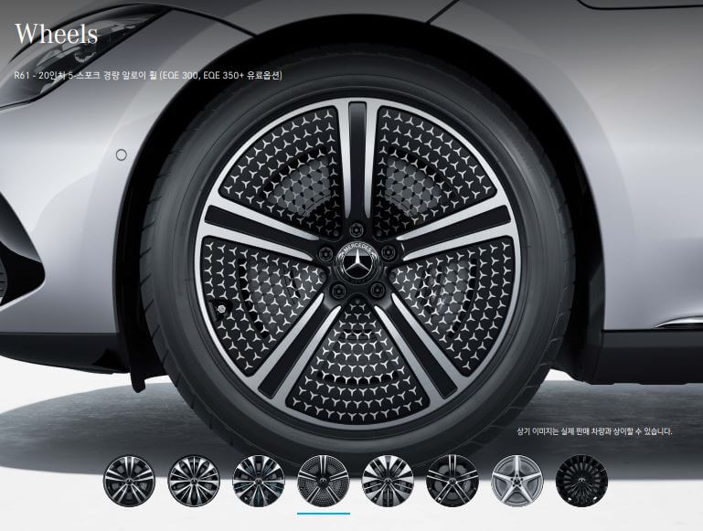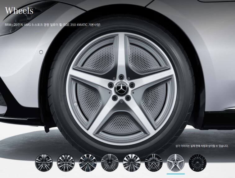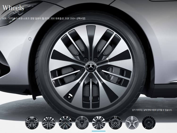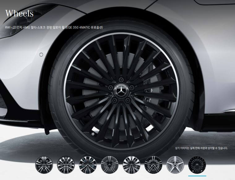 휠은 총 8가지입니다. 모델별로 선택할 수 있는 휠은 다르니 참고하시기 바랍니다.