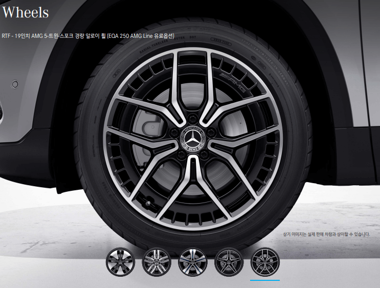 아래의 2가지 휠은 EQA 250 AMG 휠입니다. 첫 번째가 기본 휠이고, 두 번째는 유료옵션입니다.