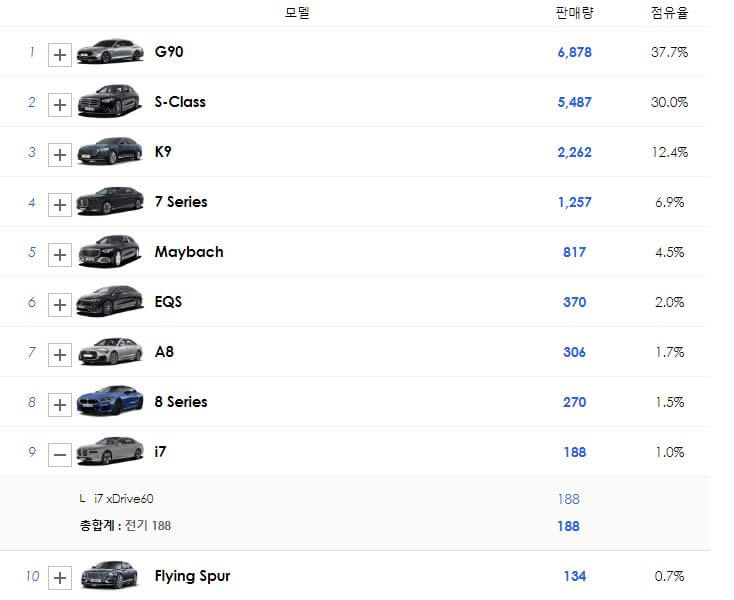 가격대가 비싸다 보니 판매량이 높지는 않은 편입니다. 경쟁차종인 EQS 동일기간 내 판매량은 370대입니다.